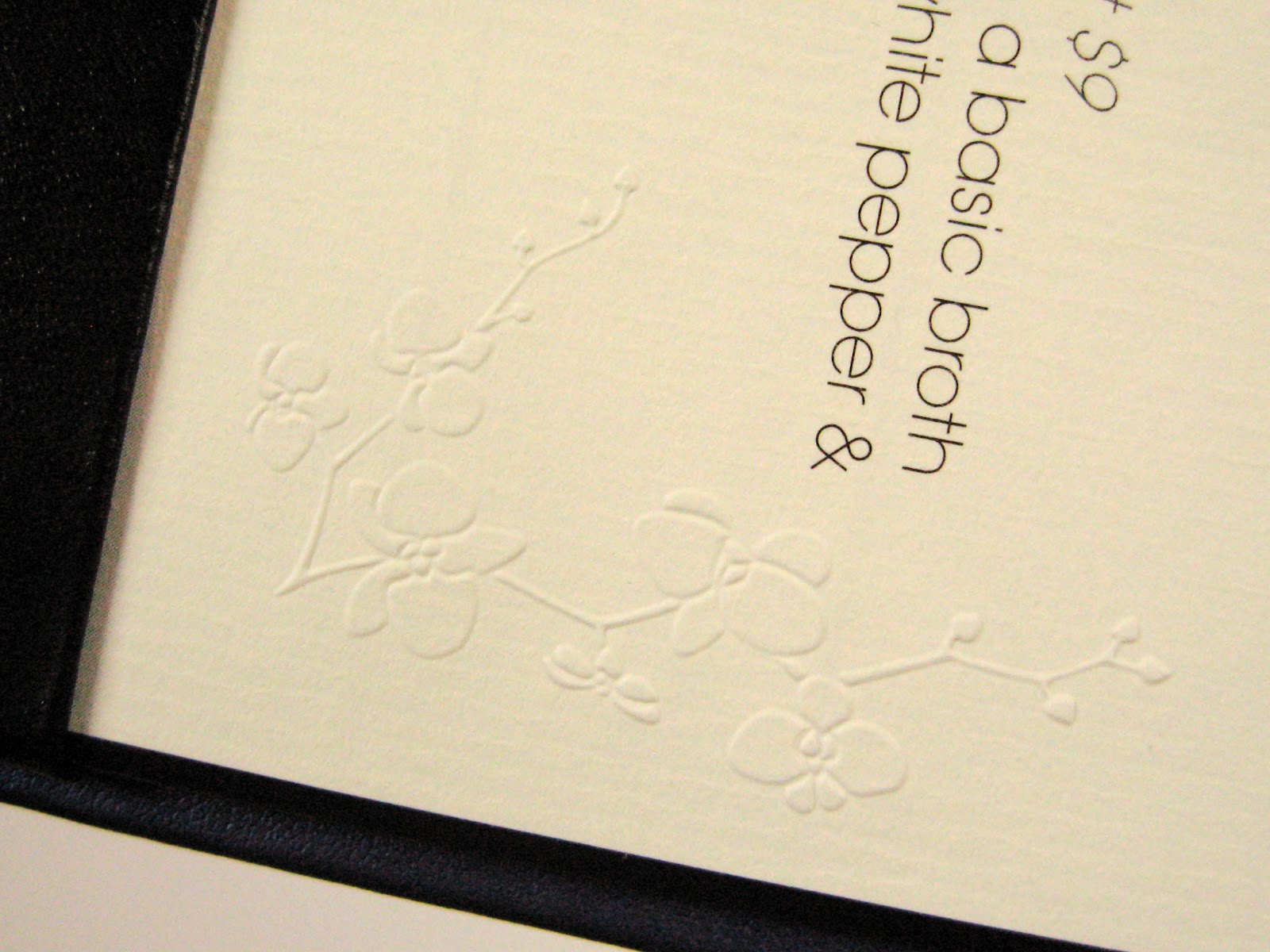 Since my last post Thai Orchid has gone through some major updates. New menu covers with a custom embossed letter head. With the custom letter head the menu is easily modified for seasonal items ect.